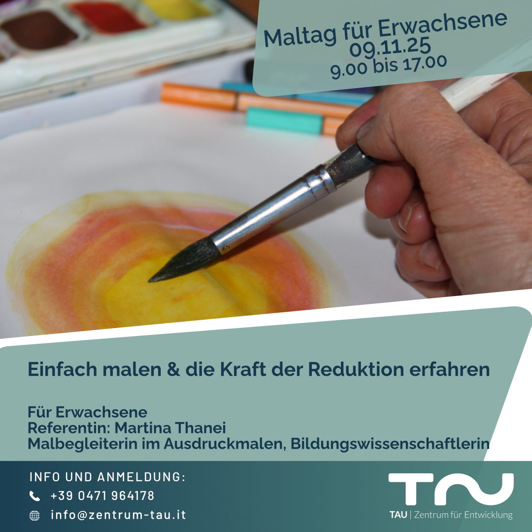 la pittura libera e spontanea offre una preziosa opportunità per affrontare il tema della riduzione, attualmente così importante per trovare possibili modi di affrontare le richieste eccessive e l'abbondanza generale. Nei processi pittorici e nelle unità di riflessione, sperimentiamo come la riduzione dei colori, delle forme e dei materiali non solo crei spazi per l'essenziale, ma apri anche nuove prospettive, promuova la chiarezza e intensifichi l'espressività - secondo il motto "meno è meglio".